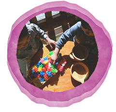 集団生活や遊びの中で、ルールを知り守る力がつくように簡単なルールに従って行動する体験を重ねていきます。 その中で友達といることの喜びを互いに教え合い認め合う中で味わえるようにします。